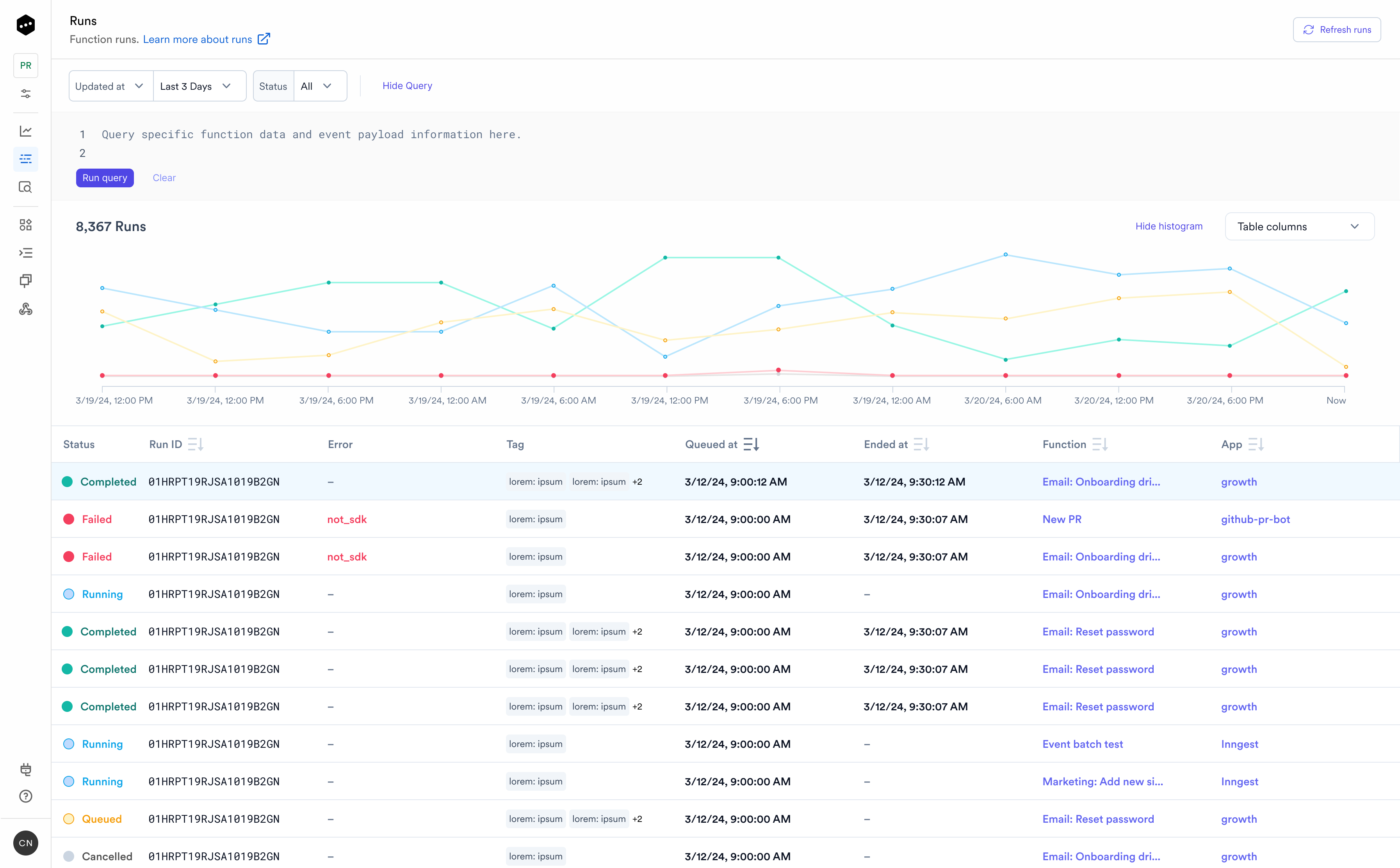 Function runs view in Inngest app